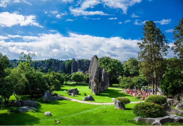 早餐后,前往昆明参观【昆明文化展览馆】,少数民族风情的纪念品一直是云南旅行购物比较大 众的选择,但最值得购买而又不会出错的,恐怕要数那些便于携带的美食特产,鲜花饼、普洱茶、野 生菌等不仅很有特色,也是赠礼佳品。另外,云南也是翡翠玉器和三七、天麻等名贵药材的原产地, 遵循您的意愿,根据您的喜好和购买能力自愿购买,无强消。 午餐后,乘车前往国家 5A 级景区【石林风景区】(含景区电瓶车),石林是世界上唯一位于亚 热带高原地区的喀斯特地貌风景区,素有“石林博物馆”的美誉,是首批中国国家重点风景名胜区、 中国国家地质公园、世界地质公园。游览阿诗玛化身石,剑峰池、望峰亭,双鸟渡食、石林湖、大小 石林等景点,穿越名副其实的由岩石组成的“森林”,行走其间,但见怪石林立,突兀峥嵘,姿态各 异,聆听每一块石头向您述说的故事。石林已经被联合国文教科评为"世界地质公园","世界自然遗 产风光"。
