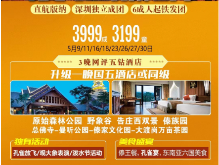 ●深圳独立成团 西双版纳5天4晚 纯玩收客无担忧