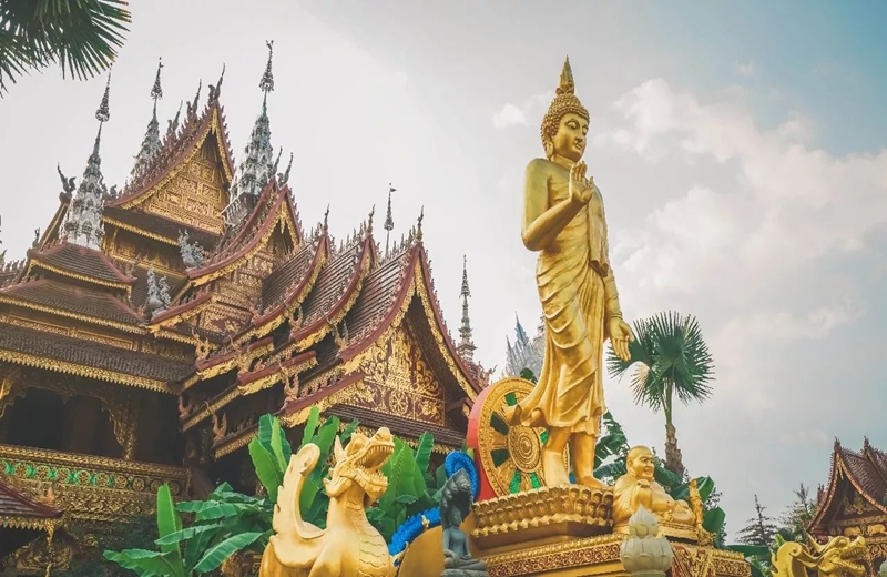 后游览【曼听公园】(电瓶车40元/人不含,自愿选择)(游览时间约120分钟)景区集中体现了“傣王室文化、佛教文化、傣民俗文化”三大主题特色。曼听公园是西双版纳最古老的公园,傣族习惯把她叫做“春欢”,意为“灵魂之园”,过去是西双版纳傣王的御花园,传说傣王妃来游玩时,这里的美丽景色吸引了王妃的灵魂,因而得名。之后游览【总佛寺】总佛寺历史悠久,佛教信徒至今仍然将此寺视为朝拜圣地,可以更加深入的了解傣族全民信仰佛教的民族文化风俗,净化心灵。