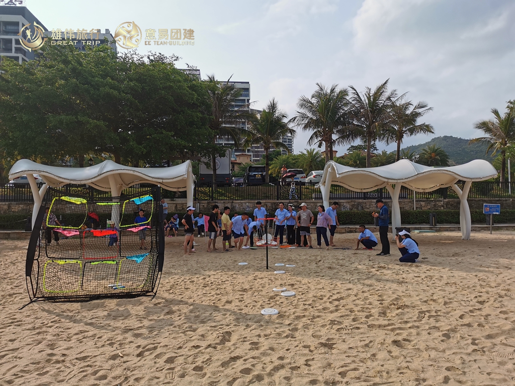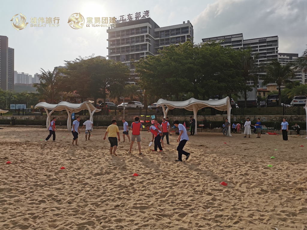 下午一起在沙滩上团建玩飞盘,